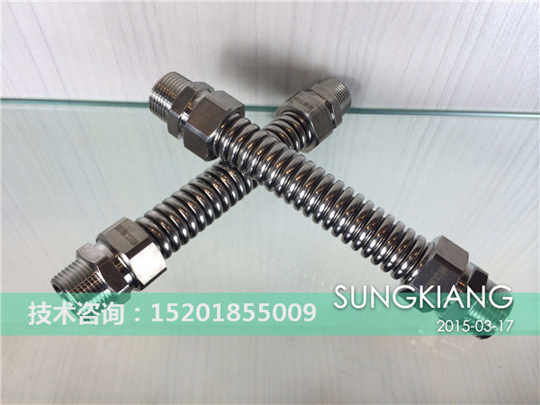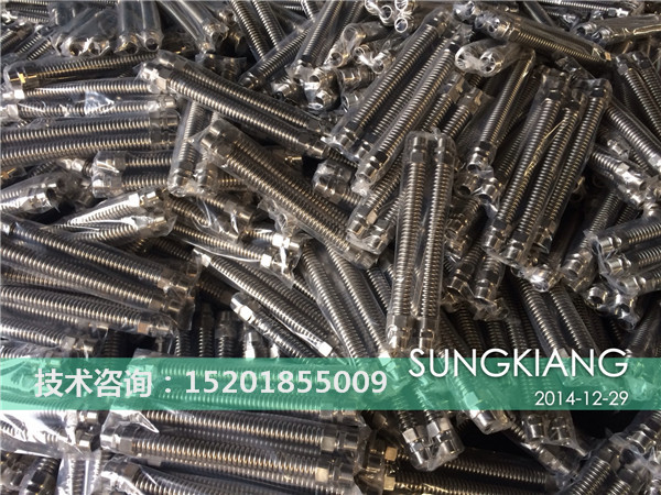3、不銹鋼金屬軟管,絲扣采用不銹鋼304,波紋也采用不銹鋼304,外面編織網也采用不銹鋼304材質,耐壓16kg,使用壽命:10年以上。缺點:價格太高,不易接受。